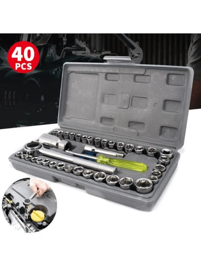 40 piezas,Juego de herramientas para mecánico, juego de llaves de vaso de acero,  juego de herramientas manuales adecuado para reparaciones de automóviles y del hogar. - Multicolor - Añade 1