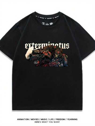 Camiseta de  de  40K con Logo Icónico y Estampado de Guerreros Blindados Desgastados en la Batalla - Ropa de Juego Oficialmente Inspirada (Tallas S-3XL) - Camiseta Casual de Manga Corta y Cuello Redondo para Fans de 40K - Negro - Añade 6
