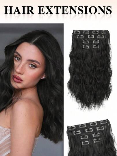 nimoki 4 piezas de extensiones de cabello con clips de 12 pulgadas, extensiones de cabello ondulado, extensiones de cabello sintético con clips para uso diario de las mujeres (negro) - Negro - Añade 7
