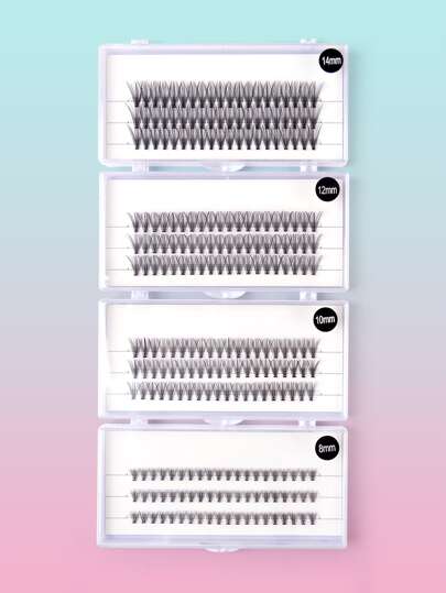 Pestañas de racimo individuales, 4 cajas de pestañas de visón de imitación, pestañas postizas de cola de pez largas naturales para mujeres, mamá, esposa, hermana, adolescente, amiga - Negro - Añade 4