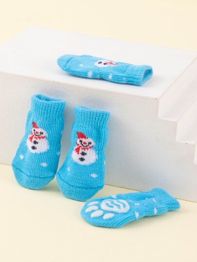 4 piezas Calcetines de mascota Navidad con muñeca de nieve - Multicolor - Añade 1