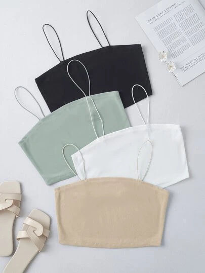 4 piezas top de tirantes corto unicolor - Multicolor - Añade 4