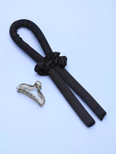 Set de herramientas de rodillo de pelo sólido de 4 piezas, rodillos de pelo para rizos sin calor | Rizadores de cabello y rulos calientes sin calor | Rizadores de Pelo para Dormir | Diadema de barra rizadora sin calor | Rizador sin calor - Negro - Añade 1
