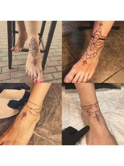 4 Piezas Pegatinas Temporales De Tatuaje Para Tobillos, Impermeables Y De Larga Duración, Perfectas Para Fiestas - Negro - Añade 3