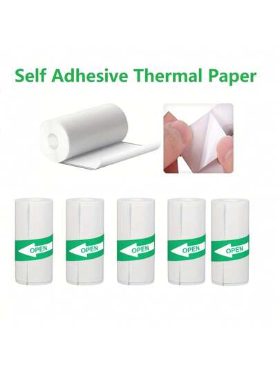5 Piezas Papel Térmico Auto-adhesivo, Papel De Impresora Mini, Papel De Pegatina Imprimible Para Impresora Térmica De Bolsillo - Blanco - Añade 1