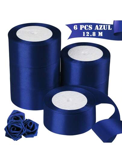 6 Rollos/12 Rollos Cinta de Raso Decorativa, Cinta de Raso Decorativa para Envolver Regalos, Adecuada para Lazos de Bricolaje, Envoltura de Regalos, Pasteles, Fiestas, Decoración de Bodas, Cinta de 4 cm 137 metros - azul real - Añade 5