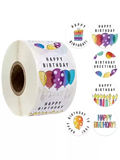 500 pegatinas de feliz cumpleaños para decoración de fiestas, sellado de sobres, etiquetas, empaque de regalos, pegatinas, tarjetas de felicitación - Multicolor - Añade 5