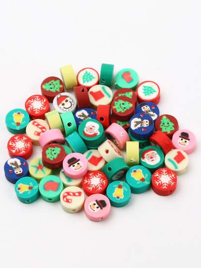 50 piezas Accesorio de joya DIY con patrón de Navidad cuenta - Multicolor - Añade 3