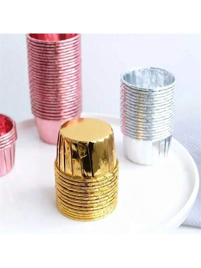 50 Piezas De Moldes Para Cupcakes De Aluminio Desechables: Perfectos Para Hornear Y Fiestas - Fácil De Limpiar Y Reutilizable - Plateado - Añade 2