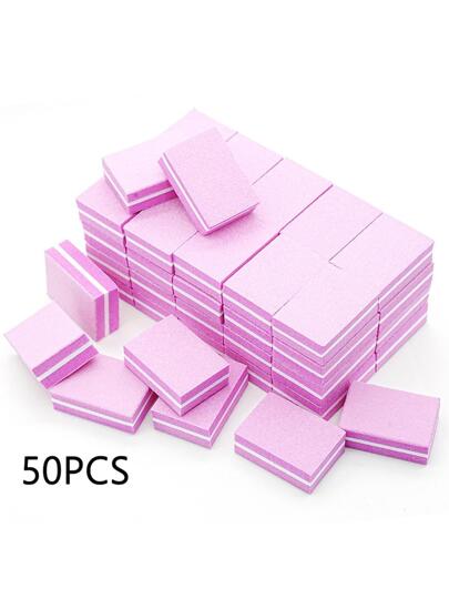 50 piezas/paquete Bloques de pulido de uñas rectangulares mini, kit desechable y lavable de doble cara para pulir y alisar - Rosa Fucsia - Añade 3