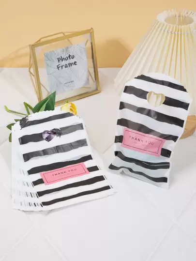 50 piezas Bolsa de regalo de plástico, bolsa de envoltura portátil con patrón de rayas - Multicolor - Añade 3
