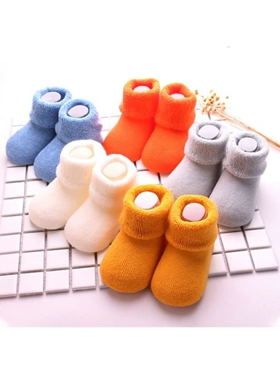 5 Pares/pack Calcetines De Bebé De Color Sólido Con Bucle De Felpa Gruesa Y Cálida Para Otoño E Invierno - Multicolor - Añade 5