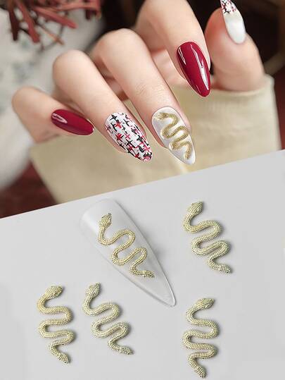 5 Piezas Decoración De Uñas Con Diseño De Serpiente Metálica - Dorado - Añade 1