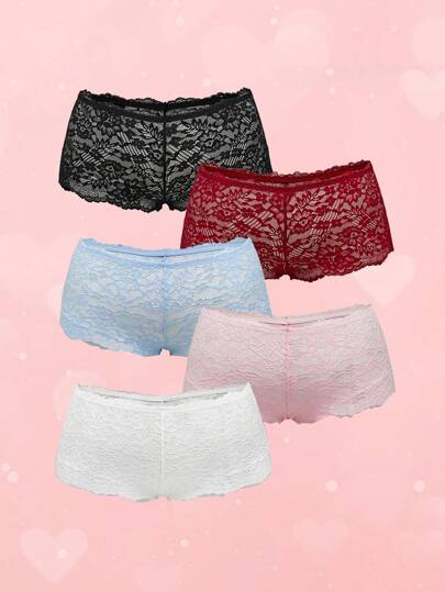 ROMWE 5 piezas Paquete de Bragas Bikini de Encaje Romántico Talla Grande - Multicolor - Añade 10
