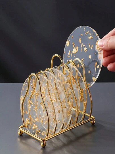 5 piezas Posavasos redondos resistentes al calor de acrílico con lámina de oro, decoración del hogar para protección de mesa (sin soporte para posavasos) - Multicolor - Añade 7