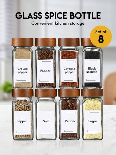 6-12 piezas Frascos de especias etiquetados, Frascos de especias de vidrio con tapas de bambú, Suministros esenciales de cocina, Juego de frascos de especias, Juego de cocina, Estante de especias, Estante de especias para gabinete - Conjunto marrón de 8 piezas - Añade 8