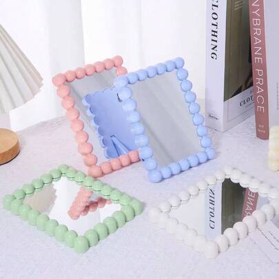 Espejo de plástico decorativo de 6 pulgadas con borde de cuentas, soporte de escritorio, accesorio de decoración del hogar - Multicolor - Añade 1