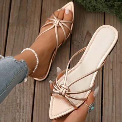610 Sandalias planas punta aguda con tiras trenzadas - oro rosado - Añade 1