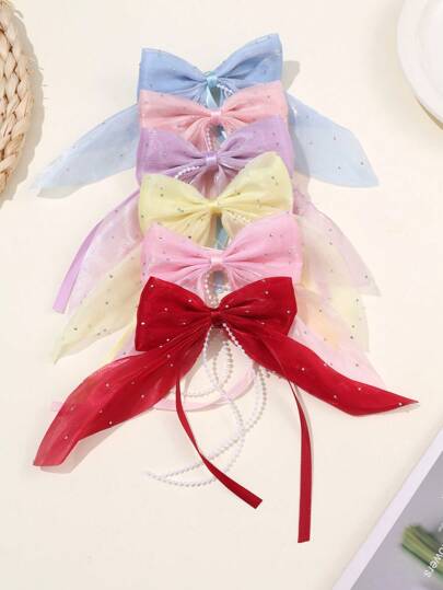 6 Piezas Pasadores de cabello con lazo en unicolor, diseño simple y elegante - Multicolor - Añade 5