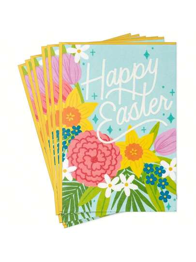 6 Piezas Tarjetas De Felicitación De Pascua, Felicidad (tarjetas De 8 X 6 Pulgadas Con Sobres) - Una flor - Añade 1