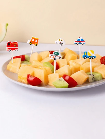 Set de 6 piezas/12 piezas de palillos decorativos con diseños de autos de dibujos animados y frutas para cócteles, lindos decoradores de torta con forma de autos - Multicolor - Añade 6