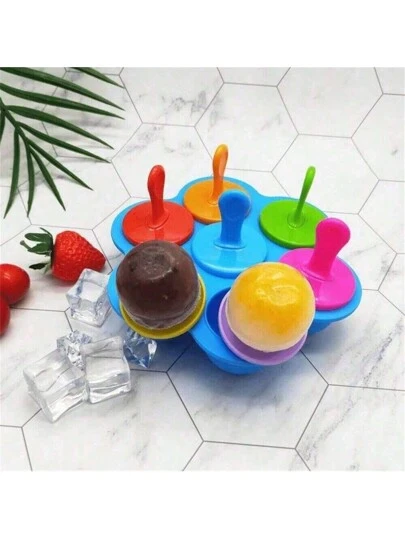 Molde para hacer helados y paletas de 7 cavidades - Fabricante de refrigerios congelados DIY simple para la cocina del hogar - Multicolor - Añade 7