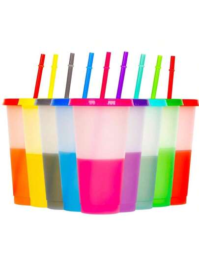 Tazas que cambian de color con tapas y pajitas, paquete de 10 reutilizables, adecuadas para fiestas, días festivos y regalos - Multicolor - Añade 7