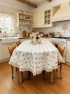 1 pieza Mantel ovalado de lino gris con bordado floral beige, mantel con elegante borde de encaje, adecuado para la temporada de cosecha de otoño, cubierta de mesa de comedor, decoración del hogar y cocina, picnic al aire libre, duradero y fácil de limpiar, ideal para bodas, fiestas temáticas, tamaño: 51.2*70.9 pulgadas/59.0*86.6-98.4 pulgadas