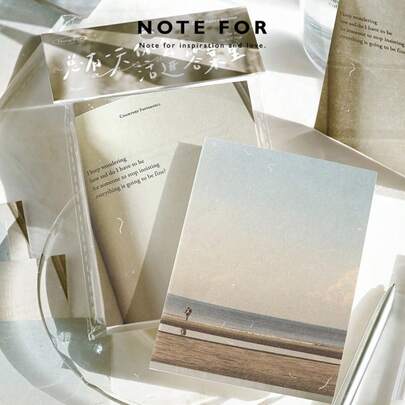 80 piezas de notas adhesivas "Confía tus pensamientos al viento" Serie, papel de notas artístico Ins, cuaderno portátil, notas adhesivas - Unitalla - Añade 10