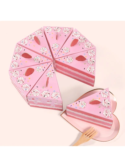 8 PIEZAS Cajas de dulces con forma de triángulo de pastel, cajas de dulces con diseño de rebanada de pastel para fiesta de cumpleaños, cajas para empacar dulces, cajas para obsequios de fiesta - Multicolor - Añade 5