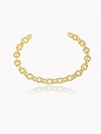 Un brazalete de cadena de cobre de estilo lujoso y ligero adecuado para que las mujeres lo usen en su vida diaria. - Dorado - Añade 5