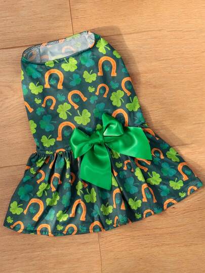 1 pieza Vestido de mascota de poliéster con estampado de trébol fresco para el Día de San Patricio, adecuado para perros pequeños como Caniche Toy y Bichón Frisé (no apto para perros grandes) - Multicolor - Añade 4