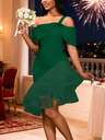 Vestido de fiesta con hombros descubiertos, cintura alta y volantes con estampado floral jacquard para mujer. Vestido de línea A ideal para invitada de boda, cita, fiesta, boda, dama de honor, graduación, fiesta de Navidad y Año Nuevo. Colección de ropa elegante y con estilo en color rojo.