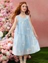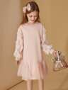 ASK JUNIOR Vestido de princesa con parches de malla para niñas, vestido de manga larga y cuello redondo de longitud media para niñas