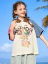 ASK JUNIOR Vestido de verano para niñas preadolescentes con bloque de color, cuello de Peter Pan, decoración de perlas y volante de malla brillante
