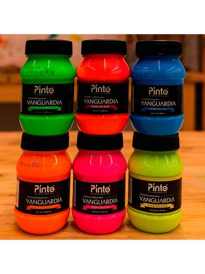 Set De Pinturas Neón Acrílicas Pinto 6 Colores x 100 ml C/U • Colores Fluorescentes Brillantes Para Luz Negra (UV) • Pintura Acrílica Lavable De Secado Rápido • Ideal Para Manualidades, Arte Psicodélico, Pintura Fluorescente, Eventos, Body Paint, Decoración De Fiestas Y Murales • Colores Intensos Que Brillan Bajo Luz Ultravioleta • No Tóxica, Base Agua, Segura Para Uso Escolar Y Artístico • Incluye Tonos Neón Vibrantes: Rosa, Verde, Naranja, Amarillo, Azul Y Púrpura • Excelente Adherencia Sobre Papel, Cartón, Tela, Madera, Espuma, Plástico Y Más • Ideal Para Artistas, Estudiantes, Pintores Urbanos Y Proyectos Creativos • Alta Cobertura Y Pigmentación Profesional • Producto Nacional De Calidad Pinto • Perfecta Para Arte Nocturno, Escenografía, Eventos Glow Y Decoraciones UV • Frascos Reutilizables Y Fáciles De Usar - Multicolor - Añade 1