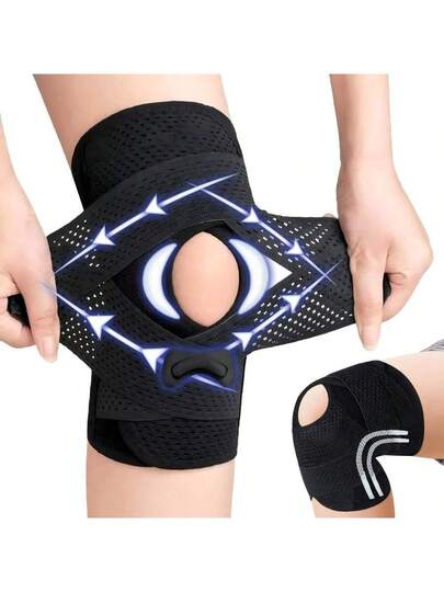 Soporte de rodilla negro transpirable con correas cruzadas ajustables en forma de V y 4 estabilizadores laterales de resorte que proporcionan estabilidad con compresión y relajación - Multicolor - Añade 8