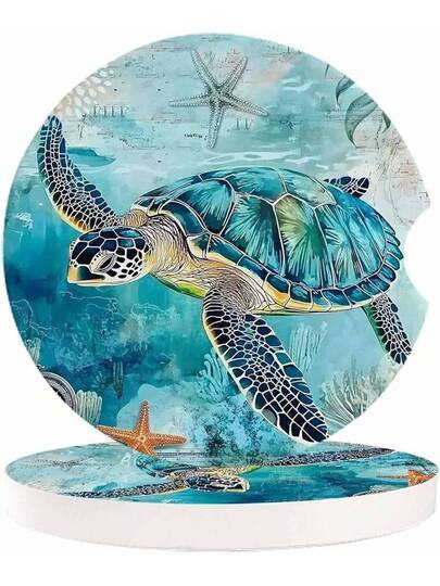 nuevoJuego de 2 posavasos de cerámica absorbente, juego de posavasos para automóviles para mujeres/hombres, juego de 2 posavasos de piedra cerámica absorbente para bebidas automotrices, océano - Verde Azulado Marrón - Añade 3