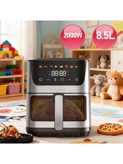 Freidora de aire de gran capacidad (8,5 litros), freidora de aire multifuncional, potencia de 2000 W, multicocina 7 en 1 con funciones de horneado, asado y fermentación. Diseño compacto, equipada con una pantalla táctil digital para satisfacer las necesidades gastronómicas de la familia. Fácil de limpiar, ideal para reuniones familiares, cocina saludable baja en grasas y preparación rápida de comidas. - Tipo de Enchufe A USA (110-127V) - Añade 2