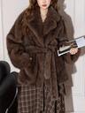 Alicedudu Chaqueta elegante de mujer con cuello de piel sintética, botones y bolsillos delanteros, atuendo de oficina sencillo para el invierno