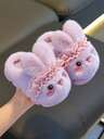 1 par de pantuflas con diseño de orejas de conejo de peluche con forro de piel sintética suave y suela de goma antideslizante, adecuadas para niños pequeños y niños en interiores como pantuflas de casa cálidas
