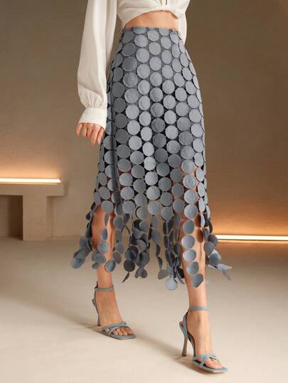 Anewsta Falda de doble capa con círculos superpuestos cortados con láser - Gris Claro - Añade 4
