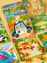 Caja de almacenamiento plegable con tapa con diseño de autobús de dibujos animados - Tela, a prueba de polvo y humedad, con capacidad de talla grande de 3.2 pies cúbicos, se pliega a menos de 27 pulgadas, adecuada para dormitorio, maletero del coche, hogar - Azul cielo, rosa, rojo, amarillo, diseño divertido para almacenamiento en dormitorio
