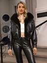 Astrid Chaqueta de cuero con capucha para mujer, de alta gama, con cuello de piel desmontable, de moda, cálida para otoño e invierno