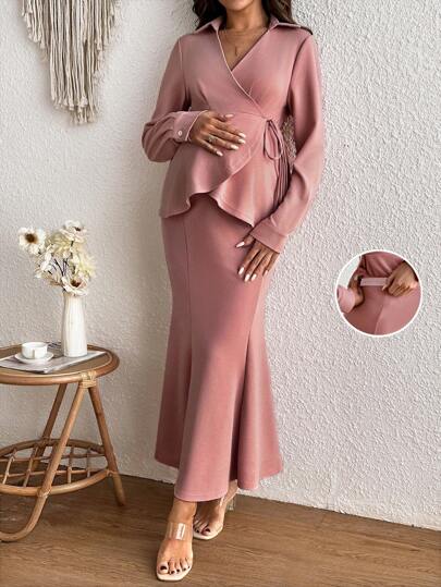 SHEIN Conjunto coordinado de blazer asimétrico y falda tubo - Rosa - Añade 1