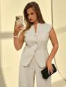 Auralis Ropa elegante para mujer de talla grande, conjunto de dos piezas con cubierta de ropa con lentejuelas, conjunto de vestido, traje de mujer para fiesta, traje color champán, elegante vestido de mujer de dos piezas