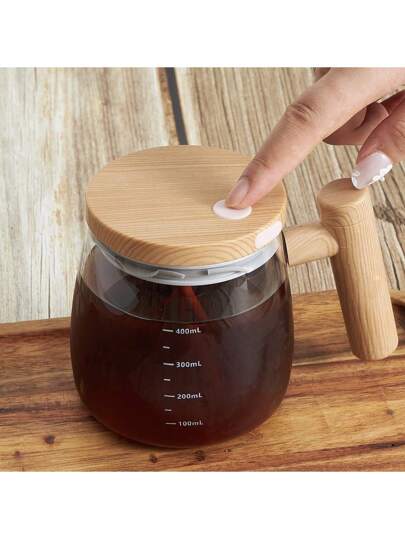 Taza con agitador de café automático de alta capacidad y Body de vidrio borosilicato, adecuado para leche y té, ideal para volver al colegio - Color de vetas de madera - Añade 4