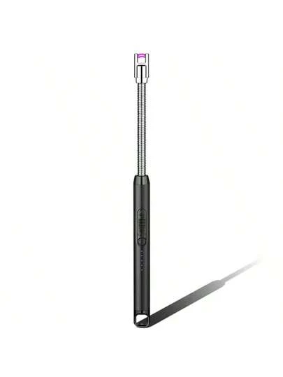 Encendedor Eléctrico Recargable USB - A Prueba de Viento - Para Barbacoas, Velas, Estufas de Gas (Largo con Manguera),Negro - Negro - Añade 1