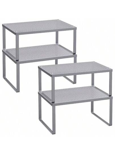 YQQ SONGMICS Especiero Estante para Especias Organizador para Armarios Apilable Ampliable Juego de 4 Estantes Metálicos Plata MKCS006S012179 - GrisPlateado - Añade 2