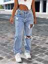Jeans acampanados casuales y sueltos con bolsillos y efecto desgastado para mujer